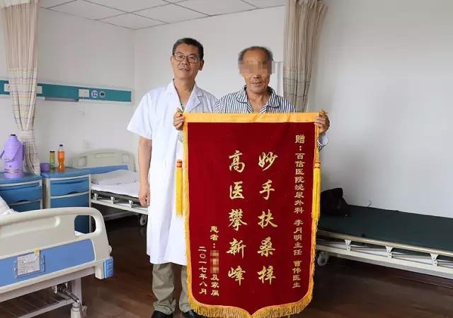 术后,老人恢复良好,第二天就能下地活动了,上厕所也正常了,饮食也正常了。手术之后,老人欣慰地说:“这个和之前开刀不一样,痛苦要少多了,感觉就像是睡了一觉,醒来之后我也没多大的痛苦。”8月22日,老人就在家人的陪伴下出院了。出院之际,老人及其家人为感谢李月明主任妙手仁心,特地定制了锦旗赠送给李主任及住院部全体医护人员。老人高兴的说,幸亏碰到天津百信医院,幸亏遇到了李主任,治疗不仅效果好还时间短,这是重新给了我一条命,谢谢院领导,谢谢李月明主任和全体大夫、护士啊。这句谢谢让在场的医护人员无不感慨万千,救死扶伤是全体医护人员的光荣使命,医生的医技使患者得以康复,使医院赢得患者信赖,这也是全体医护人员大的安慰,好的鼓励。据悉,老人这次也是以往几次住院中花费少的。