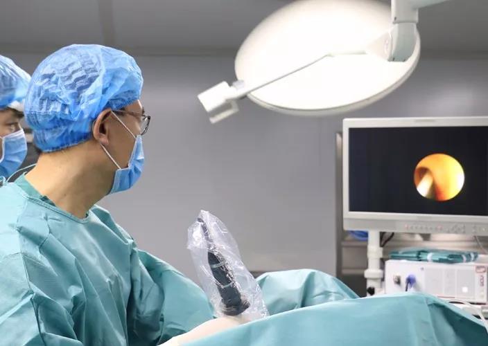 住院当天下午,护士用专用车将王女士接入手术室。待麻醉满意后,经尿道置入输尿管镜,探查膀胱粘膜无异常后,将斑马导丝置入左输尿管内,将输尿管镜沿左侧输尿管开口缓慢推进,在监视器上清晰可见输尿管下段有淡黄色结石被息肉样组织包裹,大小约1.0cm。李主任采用输尿管镜直视下取钬激光碎石,在导丝引导下置入输尿管双“J”管,经尿道插入双腔导尿管。外接无菌尿袋,手术顺利。
