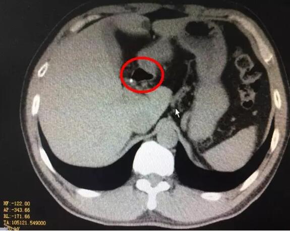 追问病史,说有右肩胛区隐痛2年余,但因为症状不明显,拍拍揉揉就好了,也就没有当一回事,去年10月医院常规体检时做过一个腹部CT,发现胆囊颈有一个3mm大小的结石,但也没有引起重视。发病前天晚上在跑步机上跑了一个小时,第二天早晨也是爬楼梯来上班的。