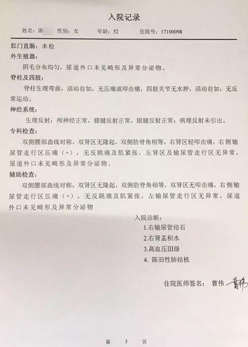 接诊后,百信医院的医护人员立刻就安排陈阿姨做了全面详细的检查,检查结果诊断为右输尿管结石、右肾盂积水、高血压三级、陈旧性肺结核等。检查结果让陈阿姨的主治医生心情沉重,这样的身体情况和复杂的病情手术难度异常,一不小心就会酿成不可挽回的遗憾。